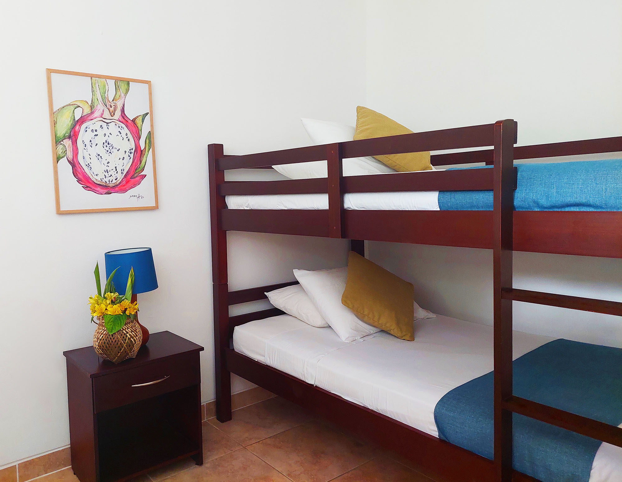- 1 dormitorio con 2 camas (1 plaza 1/2) o 2 camas literas (1 plaza 1/2).